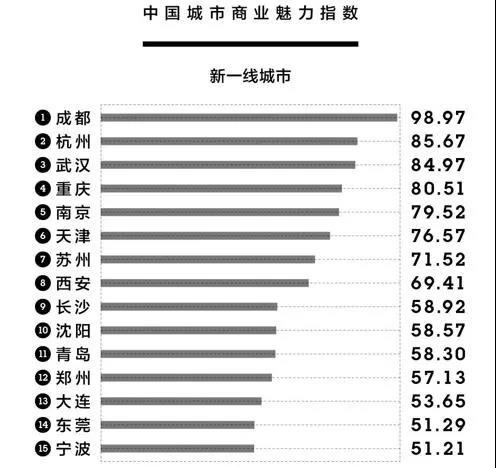 这份排行榜沿用上一年的商业资源集聚度、城市枢纽性、城市人活跃度、生活方式多样性和未来可塑性五大指标,经过算法分析统计得出。